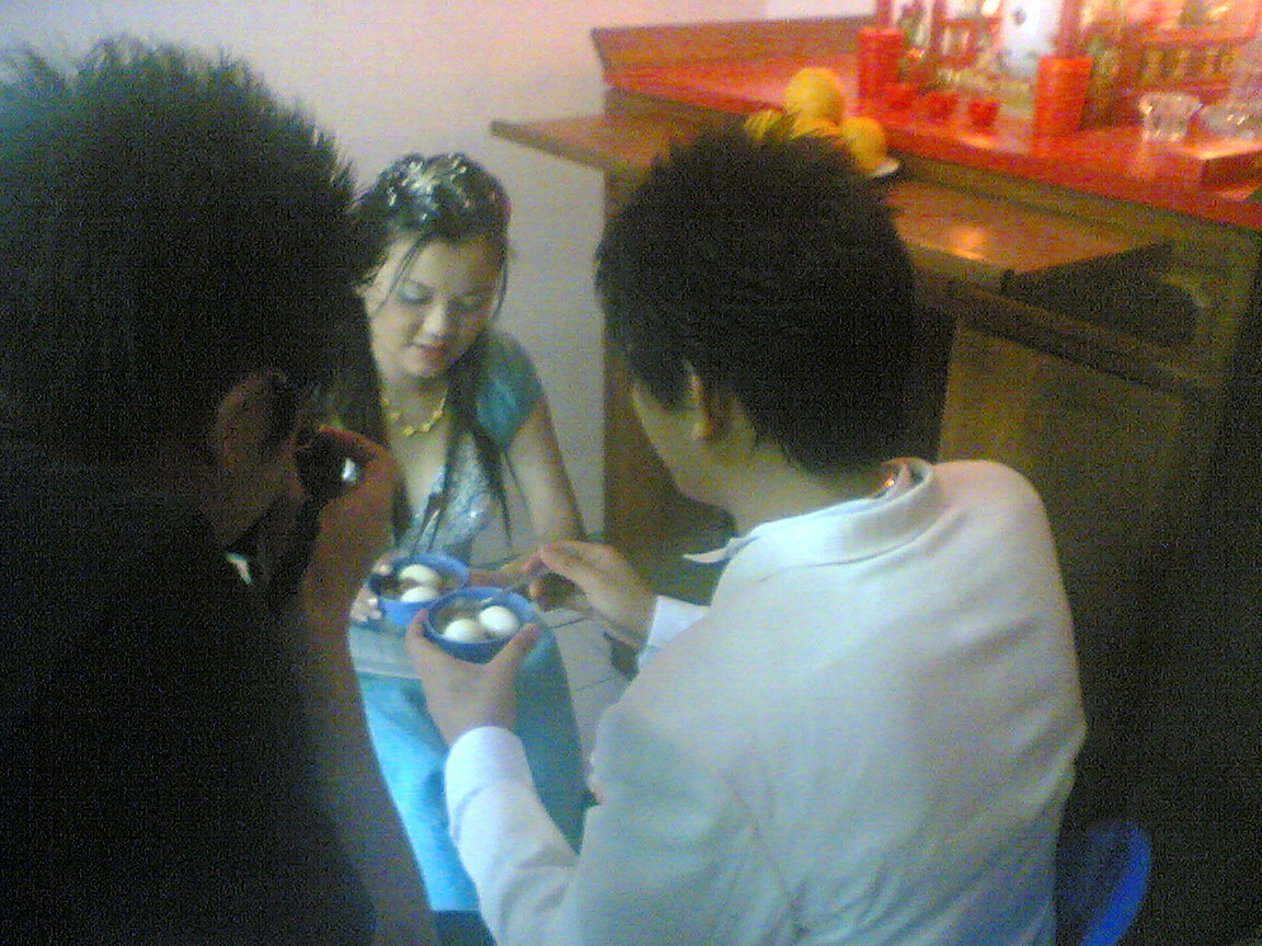 The bride and the groom and the stuoid cameraman who kept blocking my shots! The Hinghua trading of desert with boiled eggs. I dunno what the dish is called but the couples are supposed to feed each other with that. Does any weddings to this? Please pm me is you do..jpg)